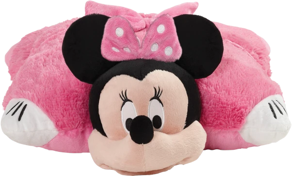 Dressed in pink and with a beautiful bow, it’s Minnie! The Disney Pillow Pets Pink Minnie features Minnie’s dot style, keeping things sharp and edgy for girls who love stylishness with a hint of feisty fun. Bring smiles to faces of all ages by offering the friendship and love of Minnie Mouse with this Pillow Pet so cuddly they’ll never want to put it down. Ideal for nap-time and bedtime – not to mention a comforting travel companion. Starts out as a plush toy, then opens up to quickly become a comfy pillow!