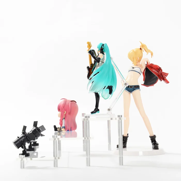 Take advantage of the clear design by experimenting with lights and colors too. Illuminate your figures from underneath to create a glowing effect, or try attaching pictures of scenery underneath each layer to recreate the environment from your favorite anime and manga series. With different setup options as well, the possibilities are endless!