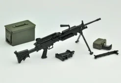 Optional parts include her G19 type handgun, tactical school bag, magazines, an ammo belt, ammo box, and her M249 light machine gun which features a 100-round magazine, long barrel, and rail handguard. She also includes interchangeable leg and waist parts to display her in a squatting pose and a papercraft to create her school locker. Add her to your collection!
