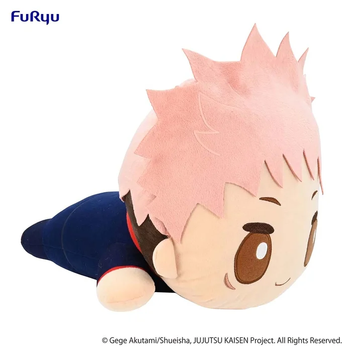 All that fighting against cursed spirits is hard work, so Yuji Itadori from Jujutsu Kaisen is taking a break as this soft plush! Measuring 13.8″ in size, the plushie captures Yuji in a lying down pose wearing his Jujutsu High uniform and giving a cute smile with big expressive eyes.