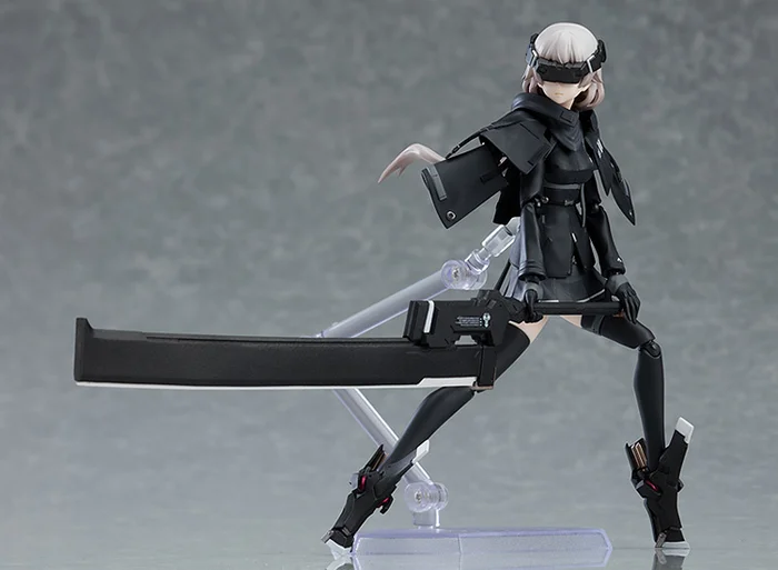 Unique use of brackets and adjective placement aside, Ichi [another] is another stylish femme fatale figma that we are thrilled is joining the Heavily Armed High School Girls line by neco. This figure is loaded with extras, included three possible face plates (expressionless, smiling, worried), a giant sword, sword scabbard, goggles, and a hood.