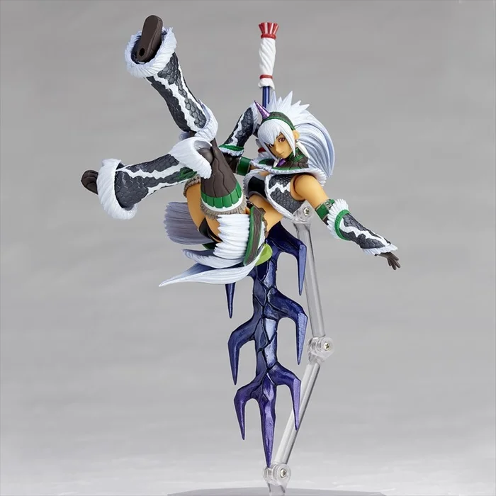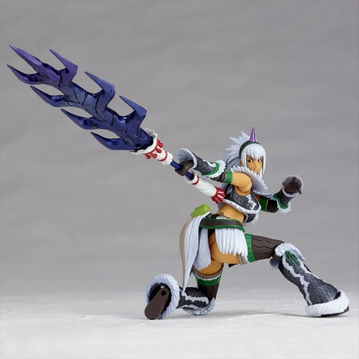 A hunter swordswoman wearing the gorgeous and phenomenally powerful Kirin U armor is joining the series and comes sculpted by Katsuhisa Yamaguchi. She stands at a height of 6.1” with 37 points of articulation and 15 joints, and also comes equipped with her Shouraiken -Kirin-, 2 optional hands, 2 optional faces, base, and 6 mm double joint.